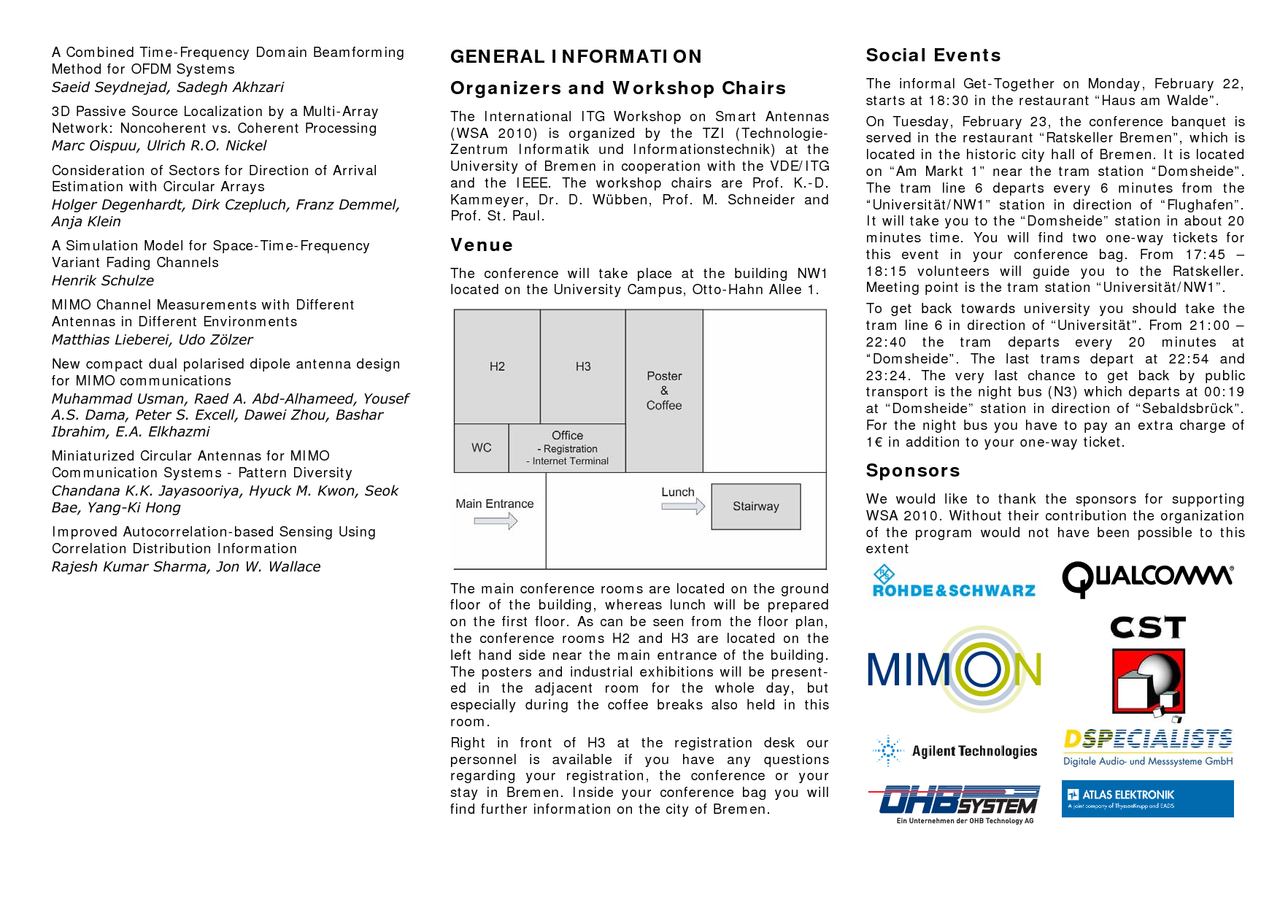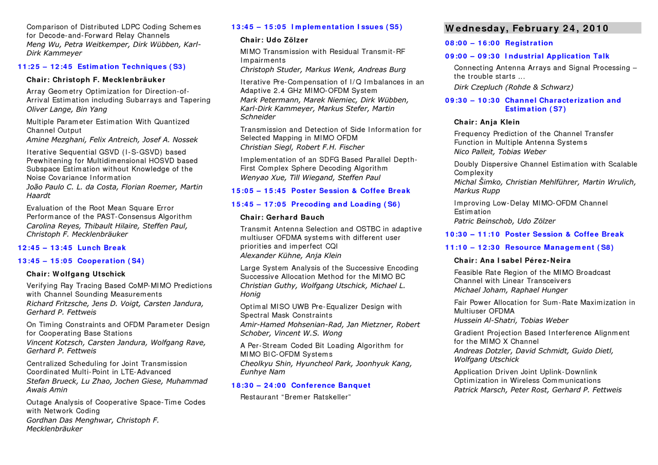 International ITG Workshop on Smart Antennas - WSA 2010, February 23-24, 2010